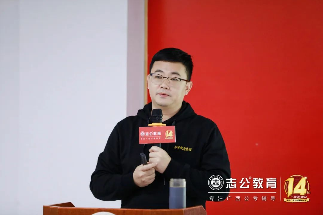 16日上午9點許,董事長李勇發(fā)表致辭,他認為:“聚焦是一種力量”,對于志公教育而言,聚焦就是專注廣西公考輔導。