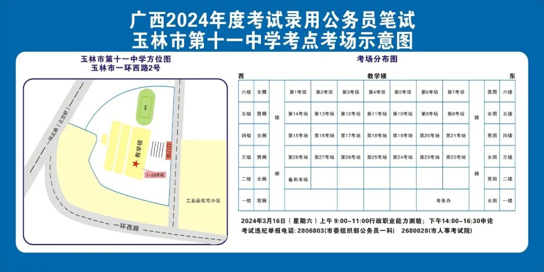 除考試當(dāng)天考生可以進(jìn)入考點(diǎn)外,考生不得提前進(jìn)入考點(diǎn)查看考場(學(xué)校將在大門處擺放考場分布示意圖),玉林考區(qū)10個考點(diǎn)的考場布置情況如下: