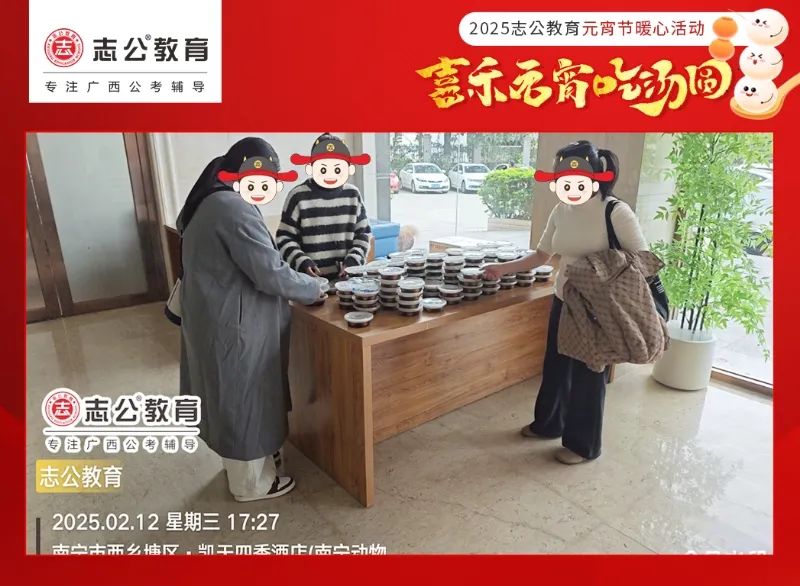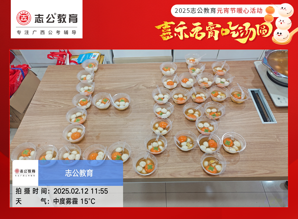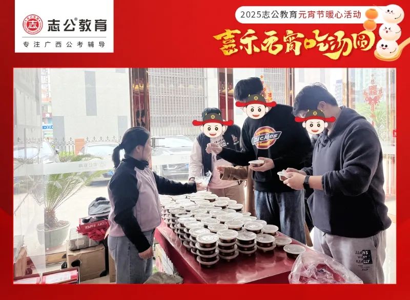 在緊張忙碌的公考備考之路上,每一位學(xué)員都在為了心中的夢想全力以赴 。堆積如山的備考資料,一場接一場的模擬考試,長時間的學(xué)習(xí)讓他們承受著巨大的壓力 。而這份在元宵節(jié)送上的湯圓,就像冬日里的暖陽,夏日里的清風(fēng),為他們帶來了片刻的慰藉 。