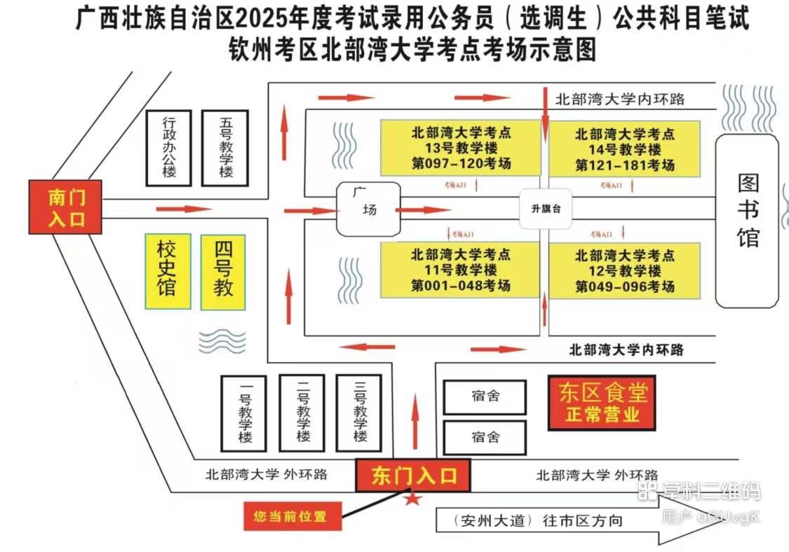 欽州考區(qū)共設(shè)兩個(gè)考點(diǎn),分別為北部灣大學(xué)考點(diǎn)、北部灣職業(yè)技術(shù)學(xué)校考點(diǎn)。(考點(diǎn)地址和具體考場安排請掃附后的二維碼查看)