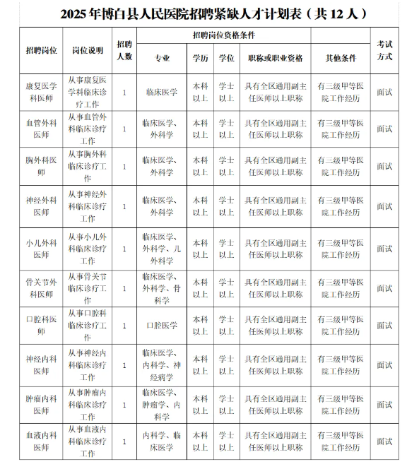 1.《2025年博白縣人民醫(yī)院招聘緊缺人才報(bào)名登記表》(附件);