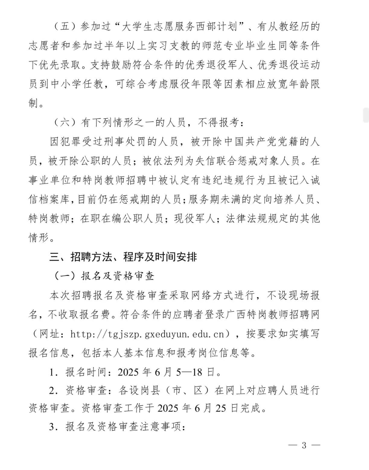 廣西壯族自治區(qū)2025年特崗教師招聘