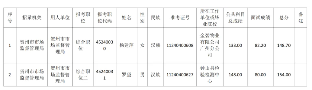 6.6 賀州市市場(chǎng)監(jiān)督管理局2025年度考試錄用公務(wù)員擬錄用人員名單