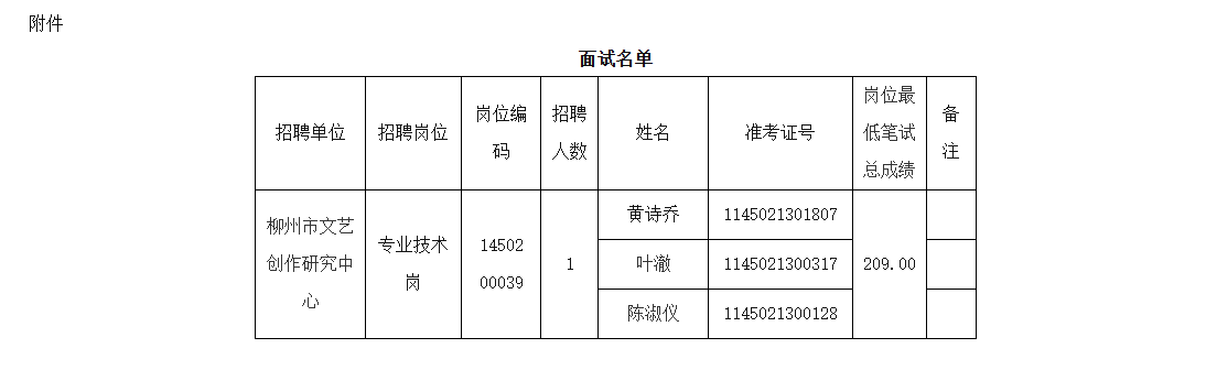 根據(jù)《廣西壯族自治區(qū)事業(yè)單位公開招聘人員實(shí)施辦法》(桂人社發(fā)〔2011〕155號)、《廣西壯族自治區(qū)人力資源和社會保障廳關(guān)于印發(fā)廣西2025年度上半年事業(yè)單位統(tǒng)一公開招聘工作實(shí)施方案的通知》(桂人社發(fā)〔2025〕3號)、《柳州市2025年度上半年事業(yè)單位公開考試招聘工作人員公告》等文件精神,柳州市文聯(lián)擬組織所屬事業(yè)單位柳州市文藝創(chuàng)作研究中心公招面試工作,現(xiàn)將相關(guān)事宜公告如下: