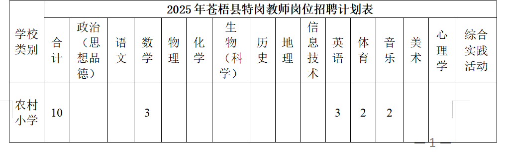 根據(jù)自治區(qū)教育廳、財政廳、人社廳《關于做好2025年特崗教師招聘工作的通知》(桂教特崗〔2025〕1號)的有關規(guī)定,現(xiàn)將我縣特崗教師招聘有關事項公告如下: