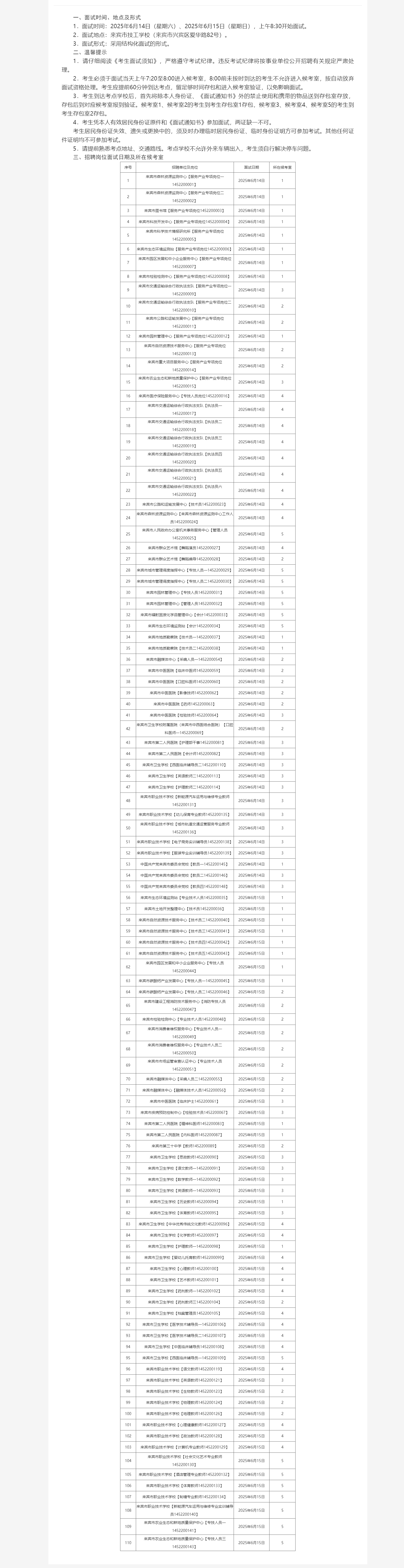 原文標題:來賓市2025年市直事業(yè)單位公開招聘人員面試招聘崗位所在候考室和溫馨提示