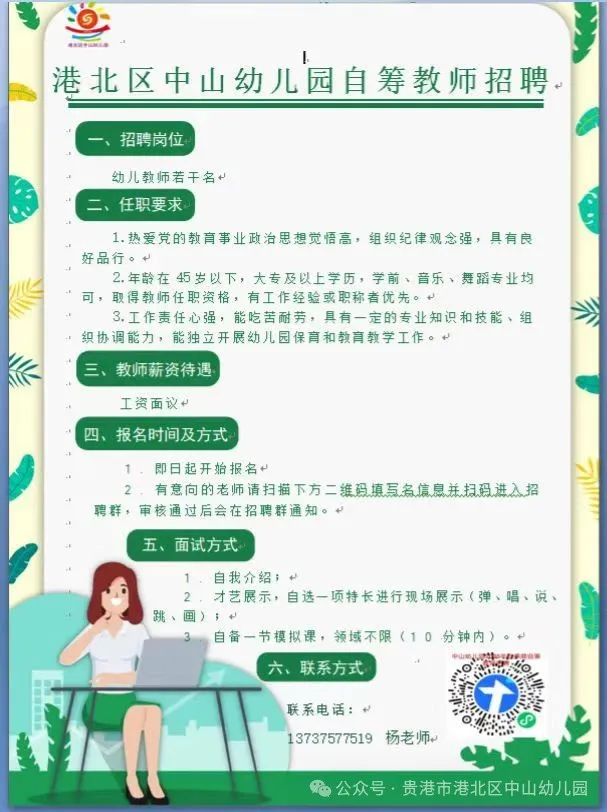 2025年貴港港北區(qū)中山幼兒園自籌教師招聘啟事