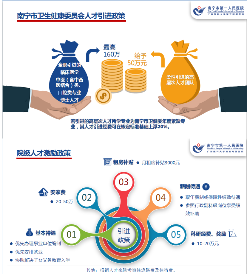 具體招聘公告詳見醫(yī)院官網(wǎng)(http://nn1yy.com/)人才信息板塊。具體招聘辦法由南寧市第一人民醫(yī)院解釋。集團成員單位待遇按各成員單位相關制度執(zhí)行。崗位表中列名的常駐地點不構成對具體工作地點或崗位的長期承諾,醫(yī)院保留根據(jù)員工個人發(fā)展需要及工作需要對員工進行集團內調動、交流的權利,應聘人員應予以理解并接受。