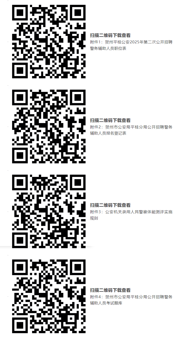報(bào)考人員自2025年7月21日起,可通過賀州市公共就業(yè)和人才服務(wù)中心“賀州市微就業(yè)”官方微信(gxhzjy)、賀州市公安局平桂分局“平桂警方”官方微信(pggafj)查閱招聘簡章及《職位計(jì)劃表》(附件1)等相關(guān)招聘信息。