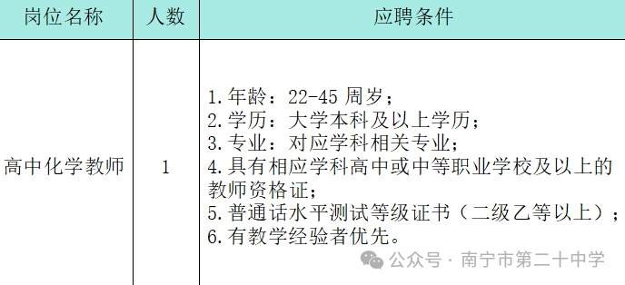 原文標題:南寧市第二十中學教師招聘啟事