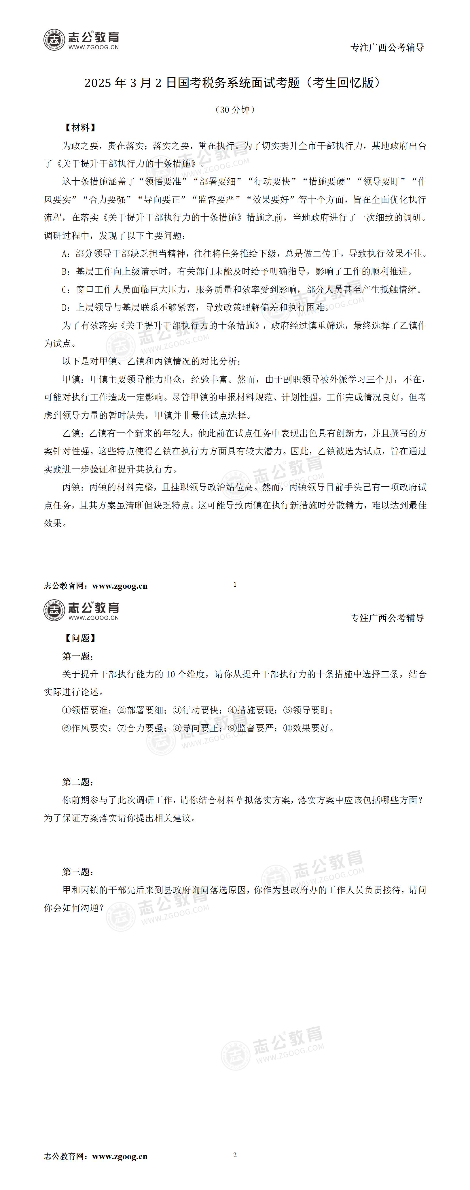 2025年國(guó)考稅務(wù)系統(tǒng)3月2日面試考題(考生回憶版)