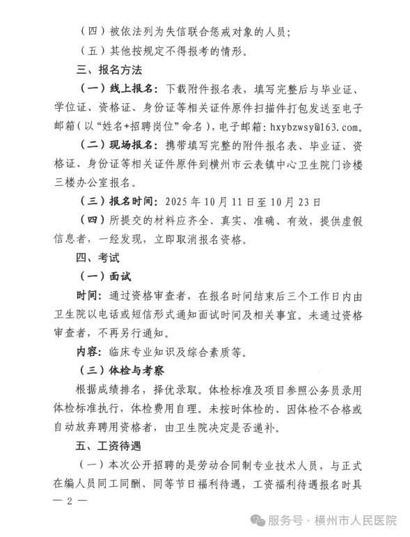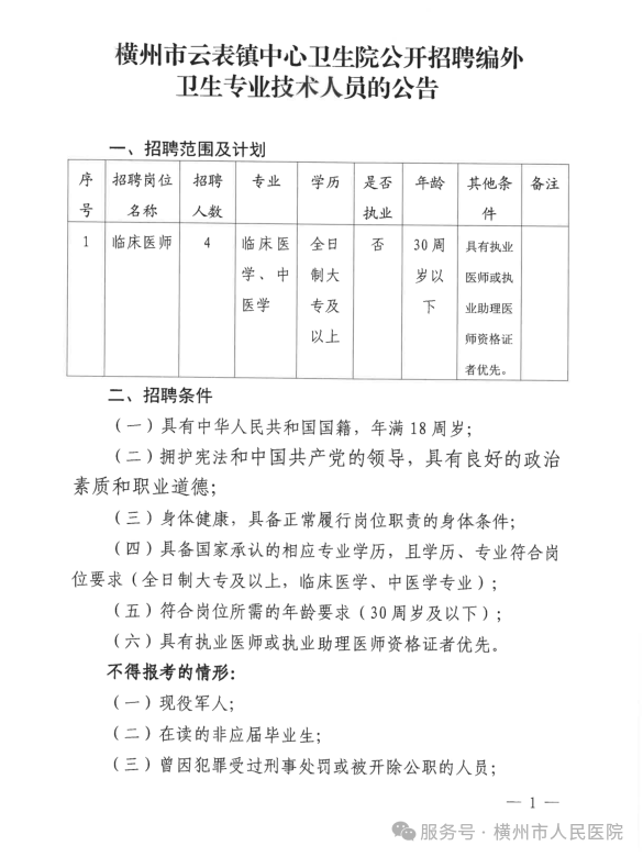 2025年橫州市云表鎮(zhèn)中心衛(wèi)生院公開(kāi)招聘編外衛(wèi)生專業(yè)技術(shù)人員的公告