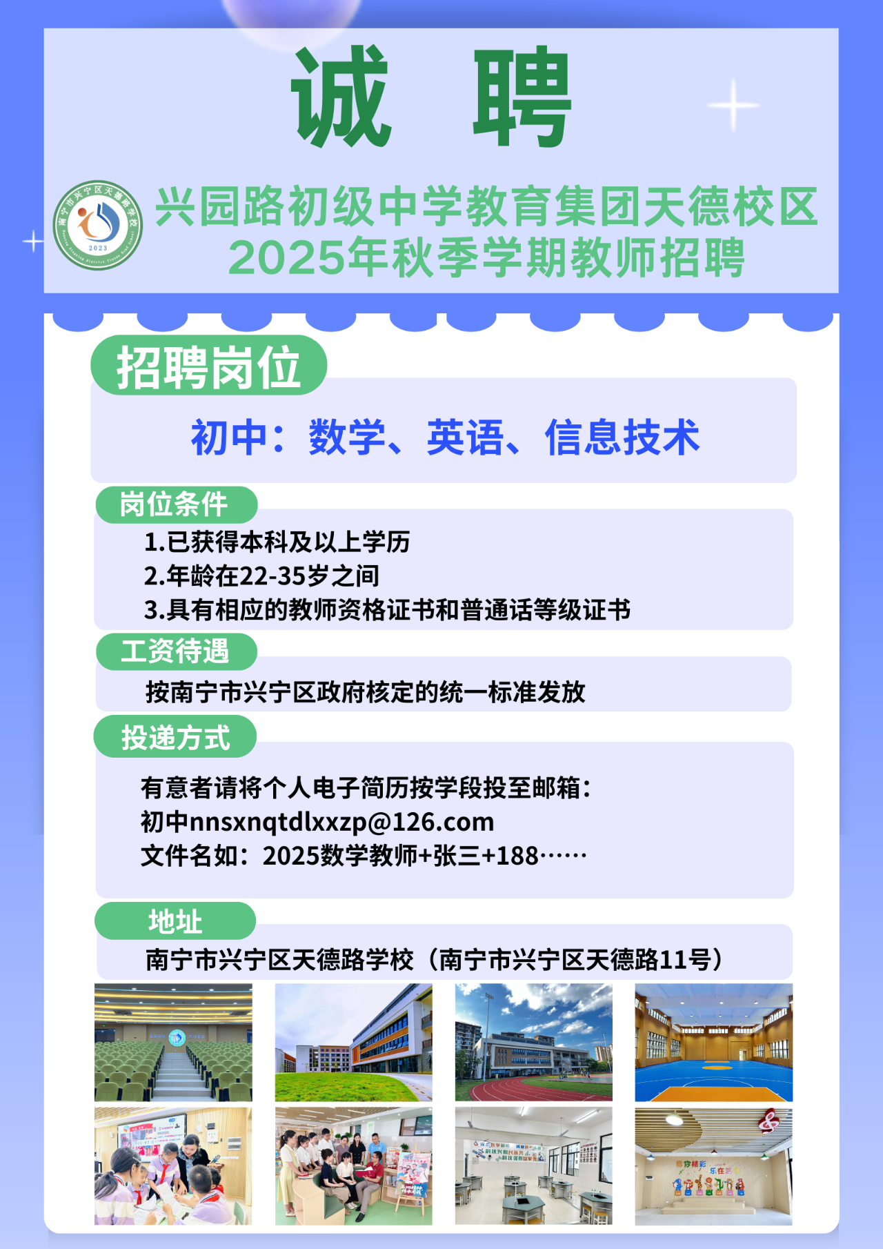 2025年興園路初級中學教育集團天德校區(qū)秋季學期教師招聘