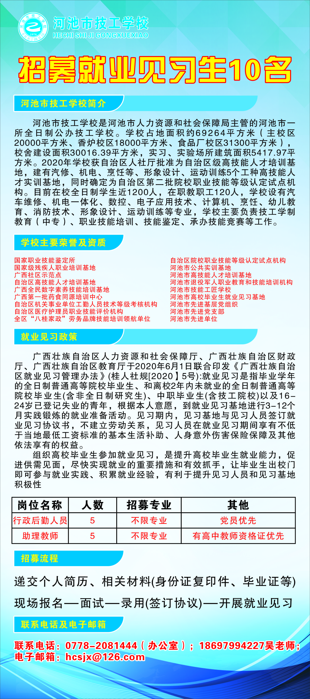 2025年河池技工學(xué)校招募就業(yè)見習(xí)生10名